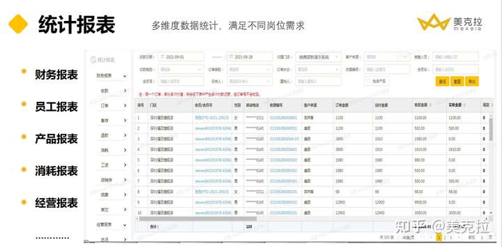 所有的美容院数据都可以用美克拉,美容院店务管理软件表现出来,系统自动采集美容院,自动汇总成表格,还能导出,美容院经营者在系统中也可以很清晰地看见,美容院每个月的经营和盈亏状况,方便美容院做月度工作总结和制定下一阶段性的工作计划。